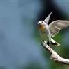 红喉姬鹟小型鸟类,体长11~13厘米。雄鸟上体灰黄褐色,眼先、眼周白色,尾上覆羽和中央尾羽黑褐色,外侧尾羽褐色,基部白色。颏、喉繁殖期间橙红色,胸淡灰色,其余下体白色,非繁殖期颏、喉变为白色。…全部>>