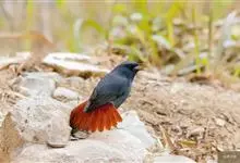 红尾歌鸲:体长13-15厘米。上体橄榄褐色。尾羽棕栗色,眼先和颊黄褐色,眼周淡黄褐色。下体颏、喉污灰白色,微沾皮黄色,胸部具橄榄色扇贝形纹,两胁橄榄灰白色,腹部和尾下覆羽与颏、喉同。尾部棕色。…全部>>