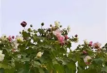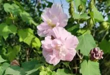 木芙蓉,锦葵科木槿属落叶灌木或小乔木。小枝上有细绒毛;叶片为卵状心形,托叶为披针形,常早落;花单生,花萼为钟形,花冠初为白色或淡红色,后逐渐变为深红色;果实为扁球形,有淡黄色的毛附着。花期8到10月。…全部>>