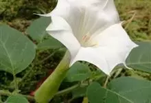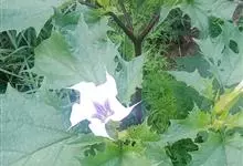 曼陀罗,茄科曼陀罗属一年生大型草本植物,全株光滑。有臭气;叶呈广卯形,边缘具不规则波状浅齿裂;花单生于枝杖间或叶腋,直立,有短梗;花萼是筒状裂片三角形,颜色为白色或淡紫色;果实为蒴果卵状,…全部>>