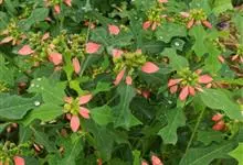 猩猩草:常绿或半常绿灌木,盆栽时株高0.5米-2米,在亚热带地区可长到6米以上。茎直立而光滑,单叶互生,卵状椭圆形至阔披针形,具不规则的深缺刻。长10-15厘米。花小,有蜜腺,排列成密集的伞房花序。…全部>>