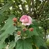 木芙蓉,锦葵科木槿属落叶灌木或小乔木。小枝上有细绒毛;叶片为卵状心形,托叶为披针形,常早落;花单生,花萼为钟形,花冠初为白色或淡红色,后逐渐变为深红色;果实为扁球形,有淡黄色的毛附着。花期8到10月。…全部>>
