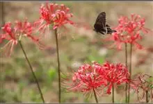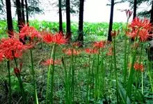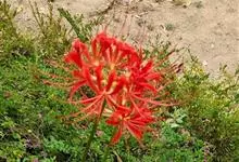 石蒜[学名:Lycoris radiata Herb.],是石蒜科石蒜属的多年生草本植物,别名彼岸花、红花石蒜、死人花、蟑螂花、龙爪花等。石蒜的叶狭带状,中间有粉绿色带,秋季出叶。伞形花序,花鲜红色。…全部>>