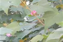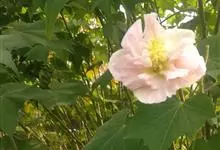 木芙蓉,锦葵科木槿属落叶灌木或小乔木。小枝上有细绒毛;叶片为卵状心形,托叶为披针形,常早落;花单生,花萼为钟形,花冠初为白色或淡红色,后逐渐变为深红色;果实为扁球形,有淡黄色的毛附着。花期8到10月。…全部>>