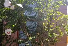 木芙蓉,锦葵科木槿属落叶灌木或小乔木。小枝上有细绒毛;叶片为卵状心形,托叶为披针形,常早落;花单生,花萼为钟形,花冠初为白色或淡红色,后逐渐变为深红色;果实为扁球形,有淡黄色的毛附着。花期8到10月。…全部>>