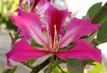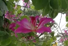 红花羊蹄甲,为豆科羊蹄甲属植物,别名艳紫荆、洋紫荆。半落叶乔木,高达了~10 m,叶草质,近圆形或阔心形,长8~13cm顶端开裂至全叶长1/4~13,裂片顶端圆。总状花序顶生或腋生,花冠紫红色,…全部>>