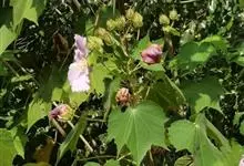木芙蓉,锦葵科木槿属落叶灌木或小乔木。小枝上有细绒毛;叶片为卵状心形,托叶为披针形,常早落;花单生,花萼为钟形,花冠初为白色或淡红色,后逐渐变为深红色;果实为扁球形,有淡黄色的毛附着。花期8到10月。…全部>>