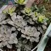 蓝石莲是景天科、拟石莲花属的多肉植物。茎部粗壮,成熟植株茎部木质化。叶片莲座型密集排列,株径不会很大,叶片相对较薄,常年绿色,表面布有白色粉末,中部凹陷,呈倒水滴状。叶尖较尖,叶缘光滑无褶皱,…全部>>