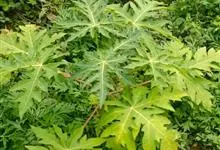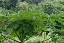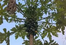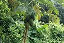 番木瓜,番木瓜科番木瓜属的常绿软木质小乔木,高达10米,具有乳汁;茎不分枝或有时于损伤处分枝;叶大且聚生于茎顶,近似盾形,叶柄中空;花单性或两性,有些品种雄株偶尔生两性花或雌花,…全部>>