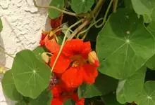 旱金莲是旱金莲科旱金莲属蔓生一年生草本植物。叶互生,叶柄向上扭曲,盾状,叶圆形,具波状浅缺刻,下面疏被毛或有乳点;花黄、紫、桔红或杂色,花托杯状,花瓣为圆形,边缘具缺刻;果实为扁球形;花果期6-10月,…全部>>