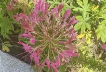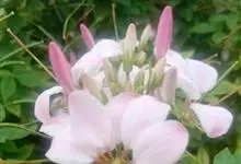 醉蝶花 Iltis)是白花菜科醉蝶花属的一年生粗壮草本植物。株高1-1.5米;掌状复叶;托叶剌状叶柄常有淡黄色皮刺;总状花序顶生,花瓣红、淡红或白色,…全部>>