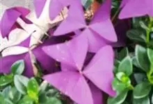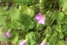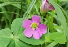 红花酢浆草别名铜锤草、大酸味草、幸运草等,是酢浆草科酢浆草属的多年生直立草本植物。其无地上茎,地下部有球状鳞茎;叶基生,叶柄长5~30cm或更长,被毛;花瓣5,倒心形,淡紫色至紫红色,基部颜色较深。…全部>>