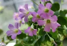 红花酢浆草别名铜锤草、大酸味草、幸运草等,是酢浆草科酢浆草属的多年生直立草本植物。其无地上茎,地下部有球状鳞茎;叶基生,叶柄长5~30cm或更长,被毛;花瓣5,倒心形,淡紫色至紫红色,基部颜色较深。…全部>>