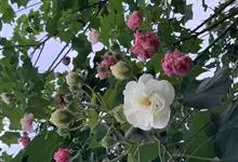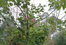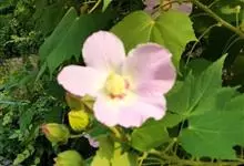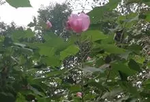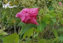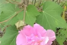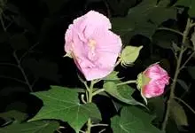 木芙蓉,锦葵科木槿属落叶灌木或小乔木。小枝上有细绒毛;叶片为卵状心形,托叶为披针形,常早落;花单生,花萼为钟形,花冠初为白色或淡红色,后逐渐变为深红色;果实为扁球形,有淡黄色的毛附着。花期8到10月。…全部>>