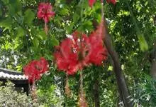 吊灯扶桑 Hook. f.)为锦葵科木槿属的常绿灌木。高达3米;小枝常下垂;叶椭圆形或长圆形,先端尖或短渐尖,基部楔形;花梗细,无毛或具纤毛,中部具节;蒴果长圆柱形;花期全年。因似灯笼高挂,…全部>>