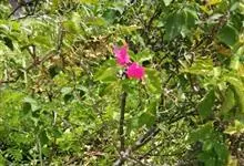 朱槿,锦葵科木槿属的常绿灌木,叶子呈阔卵形或狭卵形,边缘具粗齿;花生于上部叶腋间,常下垂,花冠呈漏斗形且为玫瑰红色或淡红、淡黄等色,花瓣呈倒卵形,先端圆;蒴果为卵形,平滑无毛且有喙;花期全年。它的名称,…全部>>