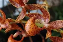 大花盆距兰 Kuntze):茎粗壮,长2-5厘米,节间长约1厘米。叶大,带状或长圆形。伞形花序侧生,通常2-3个,具4-6朵花;花大;萼片和花瓣淡黄色带棕紫色斑点,椭圆形,近相似,长12-17毫米,…全部>>