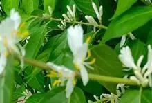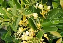 山银花在华南地区野外山林生长。木质藤本,长2~5m。树皮黄褐色渐次变为白色,嫩时有短柔毛。叶对生,卵圆形至椭圆形,长4~8cm,宽3.5~5cm,上面绿色,主脉上有短疏毛,下面带灰白色,密生白色短柔…全部>>