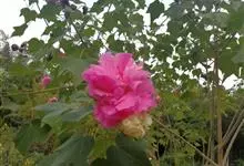 木芙蓉,锦葵科木槿属落叶灌木或小乔木。小枝上有细绒毛;叶片为卵状心形,托叶为披针形,常早落;花单生,花萼为钟形,花冠初为白色或淡红色,后逐渐变为深红色;果实为扁球形,有淡黄色的毛附着。花期8到10月。…全部>>