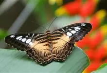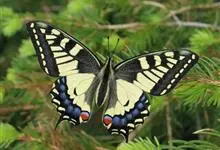 金凤蝶,是鳞翅目凤蝶科凤蝶属动物。金凤蝶为中型凤蝶,翅展70-84毫米,翅背面底色黑褐色,翅脉黑色,翅室具黄斑;前翅背面基部呈暗黄色,亚外缘为黑色,内具一列小黄斑;后翅背面亚外缘区具黑宽边,…全部>>