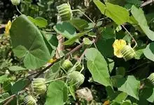 苘麻锦葵科苘麻属一年生亚灌木草本植物。茎秆较高,上面有柔毛;叶子较大且有纹路,浅绿色,边缘不平整,叶柄较长;花朵呈扇形,表面有细毛,黄色;果实较小,呈半球形,种子为褐色。花期5—6月,果期7—9月。…全部>>