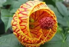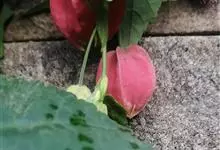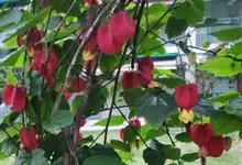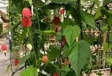 红萼苘麻是锦葵科、苘麻属常绿软木质灌木,叶绿色,长5-10厘米,心形,叶端尖,叶缘有钝锯齿,有时分裂,有细细的叶柄;叶互生,掌状叶脉;花单生于叶腋,具长梗,下垂;花萼红色,半套着大约4厘米长的花瓣,…全部>>