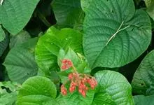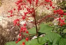 赪桐 Sweet)是唇形科、大青属灌木,高1-4米,叶片圆心形,顶端尖或渐尖,基部心形,边缘有疏短尖齿,表面疏生伏毛,二歧聚伞花序组成顶生,大而开展的圆锥花序,花序的最后侧枝呈总状花序,花萼红色,…全部>>