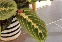 红背卧花竹芋枝叶挺拔,叶面绿色,背面红色,十分耐看,是较好的室内观叶植物。盆栽宜点缀宾馆厅堂、车站、码头的休息室和商店橱窗。 全部>>