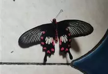 红纹凤蝶 ,Pachliopta aristolochiae,鳞翅目,凤蝶科,珠凤蝶属的一种蝴蝶展翅宽70~90mm。下翅黑色,具白色与桃红色斑纹,主要特征是下翅中央有4块白色斑纹组合成1块大型白斑…全部>>