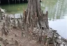 落羽杉 Rich.),杉科落羽杉属木本植物。树干尖削度大,基部通常膨大,具膝状呼吸根,树皮棕色,裂成长条片;一年生小枝褐色,侧生短枝;叶线形;球果具短柄,熟时淡褐黄色,被白粉;花期3月;球果10月成熟。…全部>>