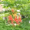 洋金凤 Sw.),豆科小凤花属灌木状或小乔木植物,枝无毛,绿或粉绿色;二回羽状复叶;总状花序伞房状,萼片无毛,花瓣橙红或黄色,圆形,花丝红色,子房无毛,花柱橙黄色;荚果窄而薄,…全部>>