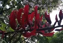 鹦哥花是豆科刺桐属植物,小乔木或乔木。树干和枝条具皮刺。羽状复叶,叶柄平滑,顶生小叶近肾形,侧生小叶斜宽心形,两面无毛。总状花序生于先端叶腋,花鲜红色,大,具花梗,苞片单生,卵形,花萼陀螺形,花冠红…全部>>