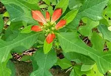 猩猩草:常绿或半常绿灌木,盆栽时株高0.5米-2米,在亚热带地区可长到6米以上。茎直立而光滑,单叶互生,卵状椭圆形至阔披针形,具不规则的深缺刻。长10-15厘米。花小,有蜜腺,排列成密集的伞房花序。…全部>>