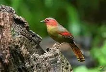 红翅薮鹛是噪眉科、薮鹛属中型鸟类,体长21-24厘米。头顶灰褐色,头侧和颈侧赤红色,上体橄榄褐色,翅上具红色块斑,尾具红色或橙黄色块斑,下体灰色沾褐。虹膜褐色或红色,嘴黑色,脚暗褐色或淡灰褐色。…全部>>