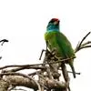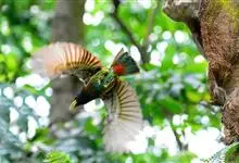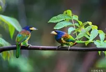 黑眉拟啄木鸟,为须䴕科、拟啄木鸟属的小型鸟类,体长20-25厘米,外形和金喉拟啄木鸟非常相似,但具粗著的黑色眉纹,头侧和耳覆羽以及下喉蓝色而不为银灰色,前颈两侧各有一块鲜红色斑。全部>>