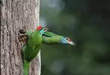 绿拟啄木鸟为鴷形目,须科,拟啄木属的一种。形较大拟啄木鸟略小,体长约260mm。头、颈及胸浅褐而具淡黄白色条纹;喉几为淡黄白色;身体余部草绿色。虹膜棕褐色,眼周裸露部黄色;嘴峰角黄色;跗跖和趾角黄…全部>>