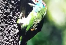 金喉拟啄木鸟,是须鴷科、拟啄木鸟属的鸟类。金喉拟啄木鸟为小型鸟类,体长19-24厘米。额深红色,头顶金黄色,后枕具一大块深红色斑,耳羽和头侧银灰色,上体草绿色,颏和上喉金黄色,下喉淡银灰色,…全部>>