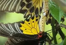金裳凤蝶是凤蝶科、裳凤蝶属的动物。金裳凤蝶身体呈黑色,头、颈和胸侧有红毛,腹部有黑黄两色相间条纹,雄蝶前翅黑色,具黑天鹅绒光泽,各脉两侧灰白色,后翅金黄色,各室外缘有等腰三角形黑斑1枚,斑内侧有晕,…全部>>