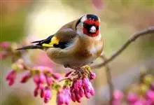 红额金翅雀:共有14个亚种。小型鸟类,体长12-14厘米。额、脸颊和颏朱红色,眼先和眼周黑色,在淡色的头部极为醒目。上体灰褐或乌褐色,尾上覆羽白色,两翅和尾黑色,翅上有黄色斑。下体喉、胸灰褐或乌褐色…全部>>