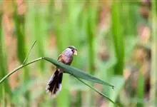 震旦鸦雀是雀形目鸦雀科鸦雀属鸟类,又名苇雀、鸦雀。全长15—18厘米。1褐而下缘白色。上背黄褐,通常具黑色纵纹;下背黄褐。有狭窄的白色眼圈。中央尾羽沙褐,其余黑而羽端白。颜、喉及腹中心近白,两胁黄褐。…全部>>