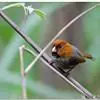 点胸鸦雀是莺科、鸦雀属小型鸟类,体长18-21厘米。头顶至枕橙棕色,嘴橙黄色、短而粗厚,脸皮黄色,耳覆羽和颊后部黑色,眼圈白色。上体棕褐色。颏黑色,其余下体淡皮黄白色,喉和上胸具黑色矢状斑。…全部>>