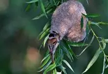 中华攀雀:体重7.5-11克,体长100-115毫米。体型纤小,雄鸟顶冠灰,脸罩黑,背棕色,尾凹形。雌鸟及幼鸟似雄鸟但色暗,脸罩略呈深色。 虹膜深褐色,嘴灰黑色,脚蓝灰色。…全部>>