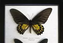 金裳凤蝶是凤蝶科、裳凤蝶属的动物。金裳凤蝶身体呈黑色,头、颈和胸侧有红毛,腹部有黑黄两色相间条纹,雄蝶前翅黑色,具黑天鹅绒光泽,各脉两侧灰白色,后翅金黄色,各室外缘有等腰三角形黑斑1枚,斑内侧有晕,…全部>>