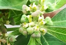 猩猩草:常绿或半常绿灌木,盆栽时株高0.5米-2米,在亚热带地区可长到6米以上。茎直立而光滑,单叶互生,卵状椭圆形至阔披针形,具不规则的深缺刻。长10-15厘米。花小,有蜜腺,排列成密集的伞房花序。…全部>>