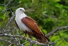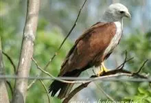 栗鸢:又叫红老鹰,为中型猛禽。体长36-51厘米。虹膜为褐色或红褐色,头、颈、胸和上背白色,其余体羽和翅膀均为栗色。主要栖息于江河、湖泊、水塘、沼泽、沿海海岸和邻近的城镇与村庄。…全部>>