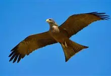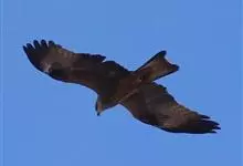 黑鸢:是鹰科、鸢属的一种中型猛禽,共有5个亚种。体长54-69厘米。上体暗褐色,下体棕褐色,均具黑褐色羽干纹,尾较长,呈叉状,具宽度相等的黑色和褐色相间排列的横斑;飞翔时翼下左右各有一块大的白斑。…全部>>