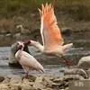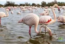 火烈鸟:亦称红鹳。3属6种:高约80-160厘米,体重2.5-3.5千克。体型大小似鹳;嘴短而厚,上嘴中部突向下曲,下嘴较大成槽状 ;颈长而曲 ;脚极长而裸出,向前的3趾间有蹼 ,后趾短小不着地;翅…全部>>