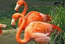 火烈鸟,是鹳形目红鹳科鸟类,属下共有六种。火烈鸟是大型水禽,体长1-2米;颈与足俱长,嘴短而厚,微向下弯曲;通体大部分羽色从粉红至深红,飞羽呈黑色;喙与足通常为鲜明的红色或黄色,眼橙色。…全部>>
