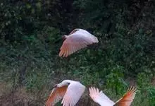 朱鹮是鹈形目鹮科朱鹮属的鸟类动物。其雄鸟通体白色,羽干及两翅与尾等均沾染粉红色;颈项上有很多长矛状羽毛,形成羽冠,耸立时非常夺目;嘴长而向下曲,呈黑色,先端朱红,脚的裸露部分亦呈亮红色。雌鸟羽色略同,…全部>>