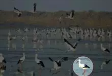 白鹳,是鹳形目鹳科鹳属鸟类。白鹳曾确定为3个亚种:指名亚种、中亚亚种和东方亚种。其体长约111厘米。嘴形直、粗厚而侧扁;体羽除飞羽黑色具铜绿色金属光泽外,余部均为白色;眼周裸区、脚、趾红色,嘴黑色。…全部>>